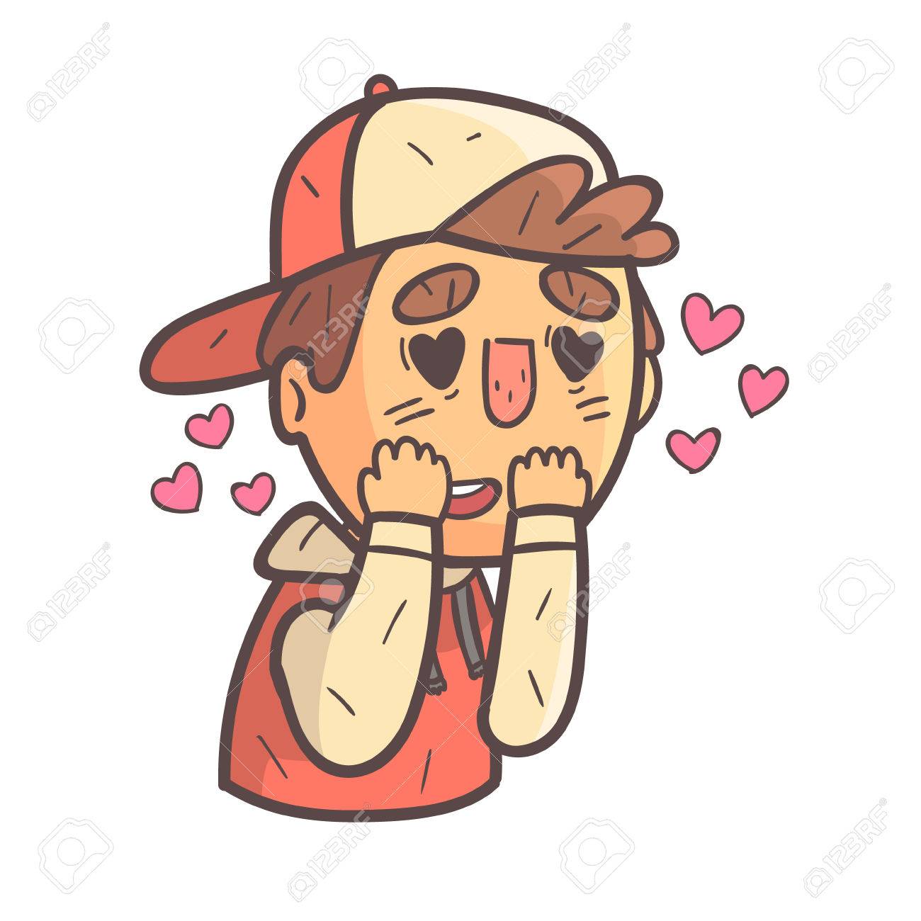 Madly In Love Boy In Cap And College Jacket Hand Drawn Emoji Madly