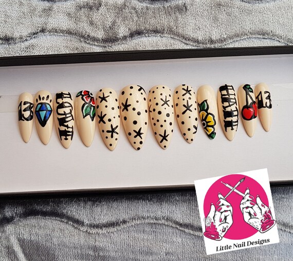 Traditional Old School Tattoo Flash Hand Painted False Nails Etsy